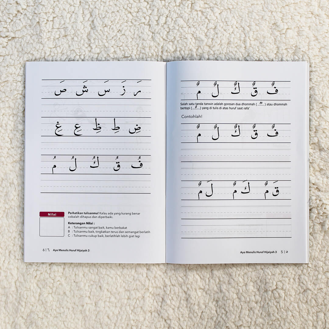 Buku Menulis Hijaiyah Jilid 3 Wafa hadir untuk membantu melatih dan membiasakan penulisan khat. Dimulai dari huruf hijaiyah yang sesuai kaidah, benar dan indah. Solusi untuk Ayah Bunda dalam mengajarkan Si Kecil lebih dalam mengenal huruf Hijaiyah dengan mempraktekkannya.