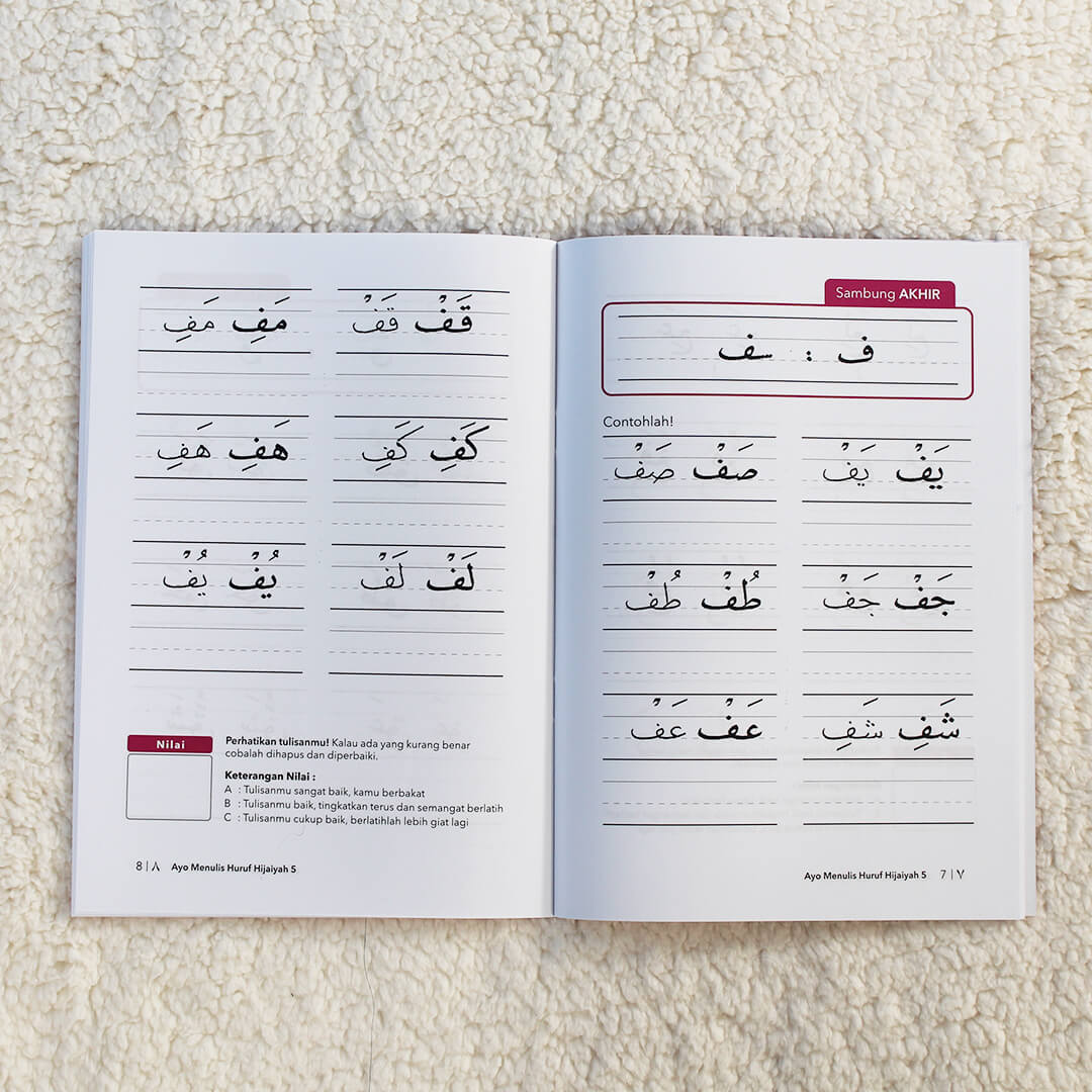 Buku Menulis Hijaiyah Jilid 5 Wafa hadir untuk membantu melatih dan membiasakan penulisan khat. Dengan membiasakan huruf sambung tengah dan akhir yang sesuai kaidah, benar dan indah. Solusi untuk Ayah Bunda dalam mengajarkan Si Kecil lebih dalam mengenal huruf Hijaiyah dengan mempraktekkannya.